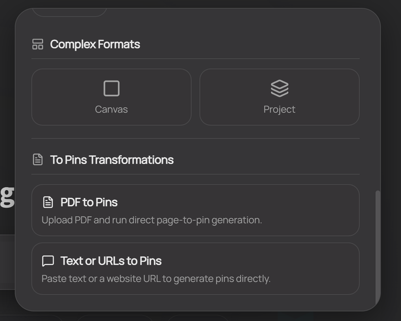 In Pindown, almost everything is a Pin, regardless of what data you want to display or generate.